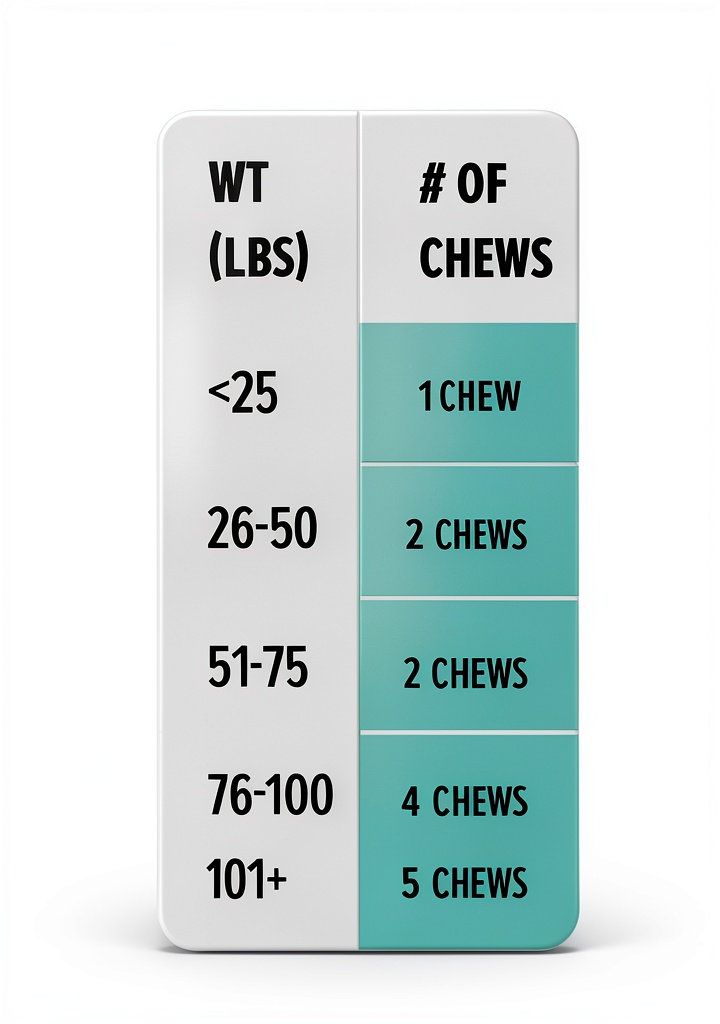 Follow the feeding guide based on your dog’s weight, typically one to two chews daily, as shown in the product images for optimal results.