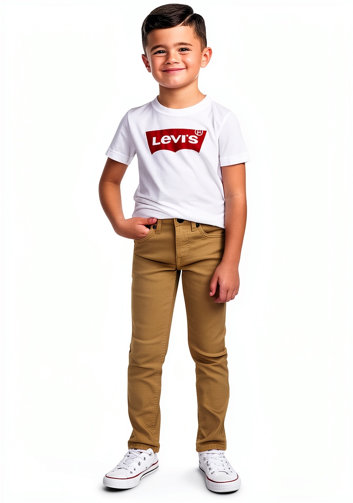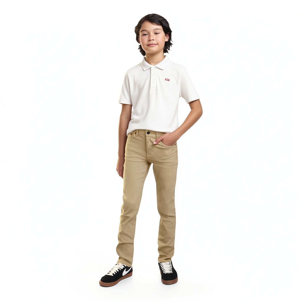 Levi’s boys skinny jeans are crafted from premium stretch denim that combines durability with flexibility, making them ideal for active children. These jeans feature an inner flex stretch waistband that adapts to movement while maintaining comfort throughout the day. Available in sizes from 2T to 20, they come in multiple color options including Pale Khaki, White, Calabasas, and Bauhaus Blues. The signature back patch adds authentic Levi’s branding, and the skinny fit provides a contemporary silhouette that stays in style.