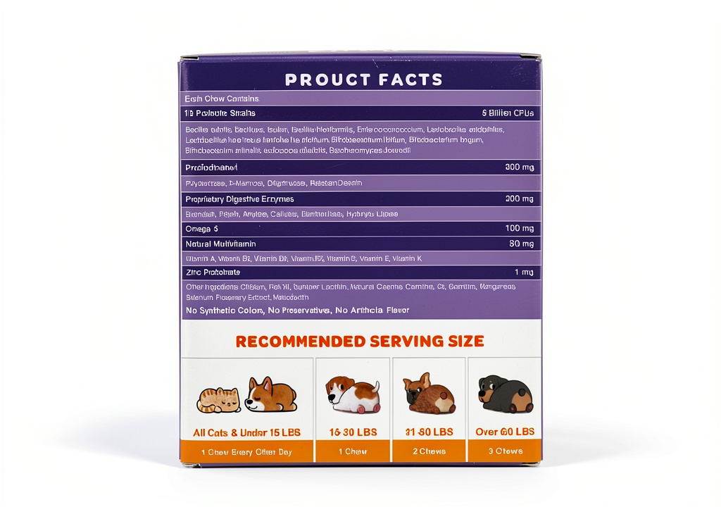 These probiotics are ideal for daily use to maintain digestive balance and immune function in dogs of all breeds and ages. They suit environments where pets may experience stress, dietary changes, or sensitivity, helping to alleviate tummy issues and improve appetite. Target audience includes dog owners seeking natural supplements for picky eaters, as the tasty chicken flavor encourages consistent consumption without resistance.