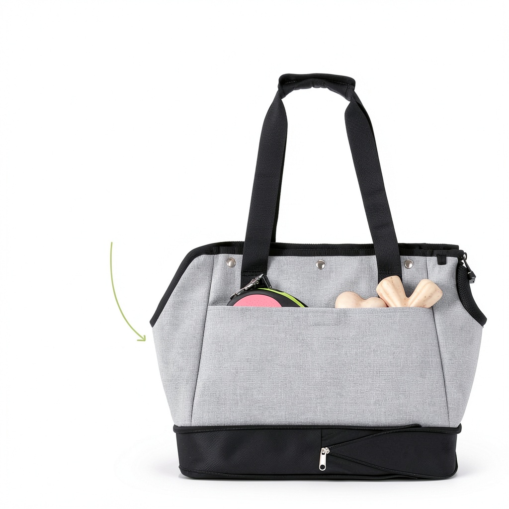 - Large storage pocket for carrying pet essentials like poop bags and snacks