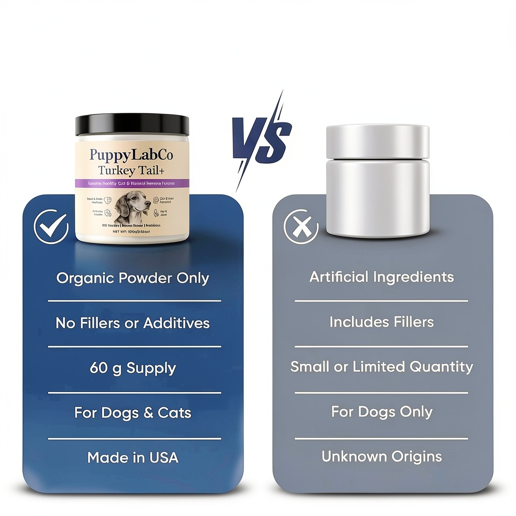 Puppylabco stands out for its commitment to quality and natural ingredients, using turkey tail mushroom from organic sources and a carefully balanced probiotic blend. Our product undergoes rigorous processing to ensure purity and effectiveness, providing a plant-based alternative that aligns with modern pet care trends. The pork-flavored formula enhances palatability, addressing common challenges with supplement acceptance, and the 100-scoop supply offers excellent value for long-term use. Backed by positive customer feedback and a high best-sellers rank, Puppylabco delivers reliable results you can trust for your dog’s well-being.
