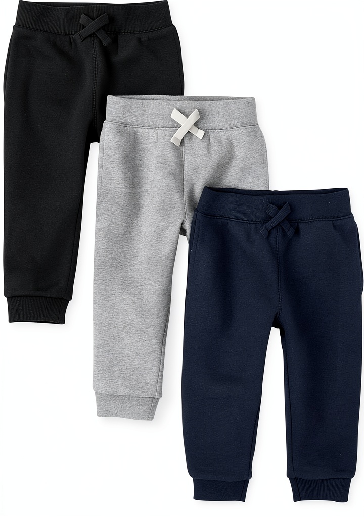 These versatile fleece jogger pants are designed for babies and toddlers aged 6-9 months through 5T, accommodating various stages of early development. The stretchy fabric and elastic waistband support natural movement during crawling, first steps, and active play. Ideal for daycare environments where easy clothing changes are essential, these pants work perfectly for playground adventures, stroller walks, or cozy indoor activities. The moisture-wicking properties of the fleece material help maintain comfort during energetic play, while the durable construction withstands repeated washing. Parents appreciate the mix-and-match capability of the three-color pack for creating multiple outfit combinations throughout the week.