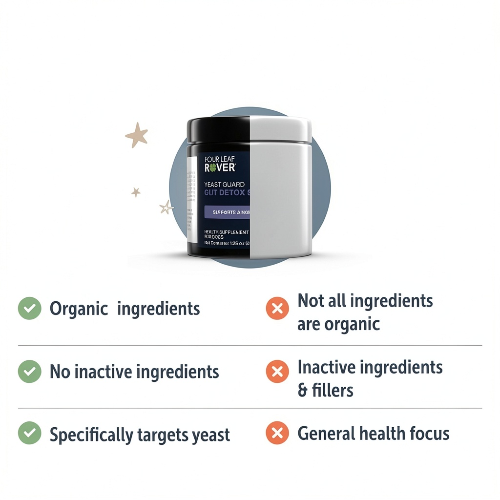 Four Leaf Rover stands out with Yeast Guard due to its veterinarian formulation and commitment to 100% natural ingredients, ensuring safety and efficacy. Unlike many supplements, it uses organic herbs for gentle detoxification, avoiding additives that could harm your pet. The satisfaction guarantee underscores our confidence in quality, offering refunds without hassle to prioritize customer trust and pet wellness.
